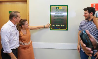 A prefeita de Várzea Grande, Flávia Moretti; o secretário de Governo, Silvio Fidelis e a secretária de Educação, Cultura, Esporte e Lazer, Maria Fernanda de Figueiredo,...