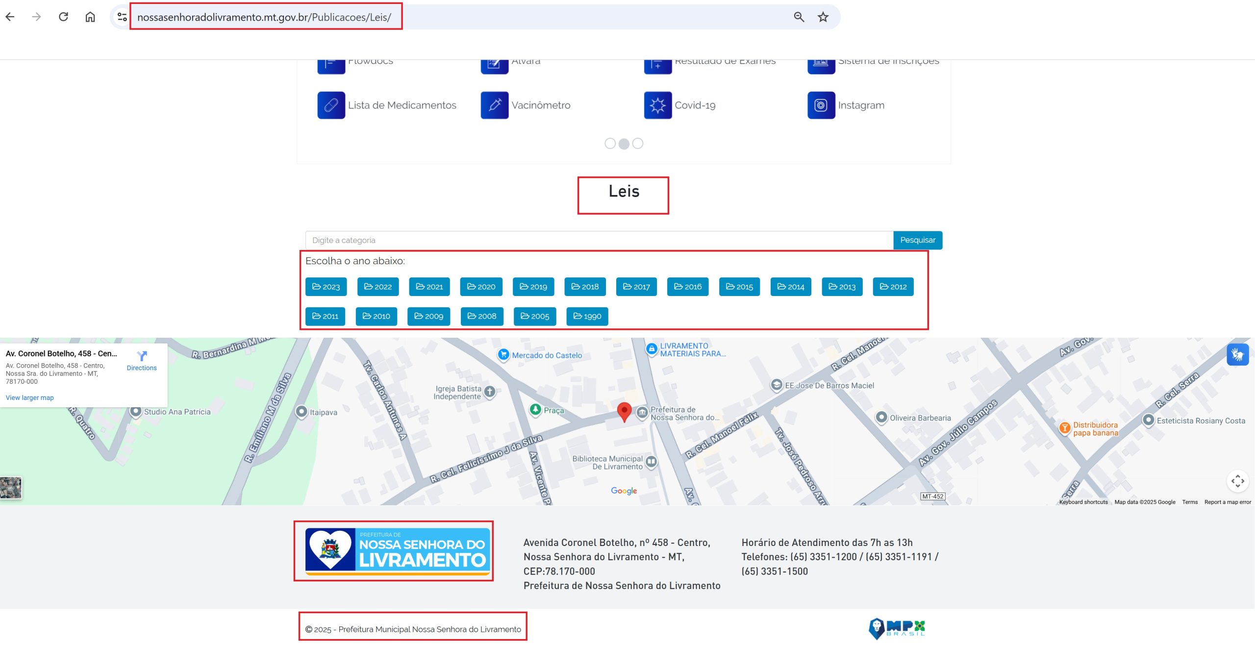 A verificação dos detalhes dessa compra esbarra em um obstáculo digital grave. A página de transparência da Prefeitura de Nossa Senhora do Livramento parou no tempo. Os dados disponíveis ao cidadão cobrem apenas atos até o ano de 2023. Isso contraria as normas de transparência ativa exigidas pelo Tribunal de Contas (TCE-MT) e a Lei de Acesso à Informação.