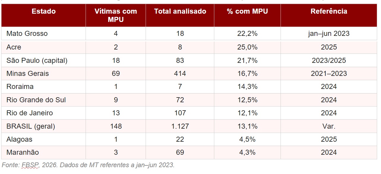 Tabela 3 — Vítimas com MPU vigente no momento do feminicídio (estados selecionados)